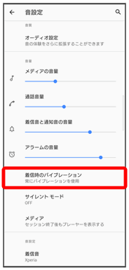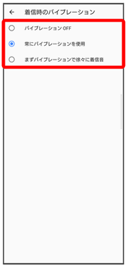 着信時にバイブレーションを動作させるかどうかを設定します。