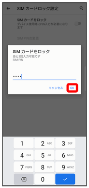 PINコードを有効にすることで、SIMカードを本機に取り付けた状態で電源を入れたとき、PINコードを入力する画面を表示するように設定できます。