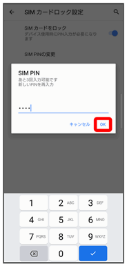 PINコードの入力を3回間違えると、PINロック状態となります。その際は、PINロック解除コード(PUKコード)が必要となります。PUKコードについては、お問い合わせ先までご連絡ください。