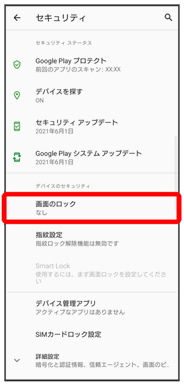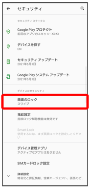 | 画面のロック | 画面ロックの解除方法を設定します。 | |