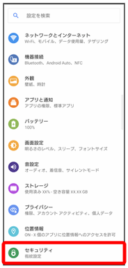 画面のロックや暗証番号など、セキュリティに関する設定ができます。