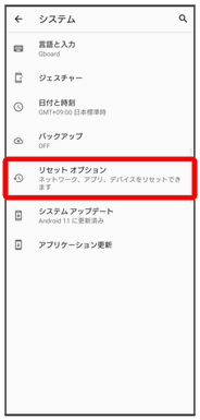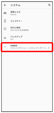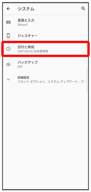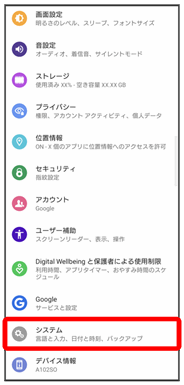 言語と入力やジェスチャー、日付と時刻、バックアップ、リセット、システム アップデートなどに関しての確認や設定ができます。