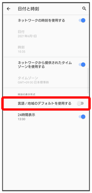 ユーザーの言語/地域の標準に従って24時間表示/12時間表示が自動設定されます。