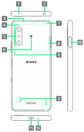 | Internal Antennas for calls, data communication, and Wi-Fi. | ||