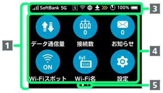 | 2 | Wi-Fiスポット接続時やクレードル(別売)を利用してLANケーブルでインターネット接続する場合にも表示されます。 |