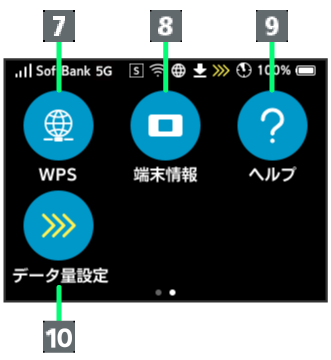 | 4 | 低速化が開始されるまでの残りデータ通信量が規定の値になった場合に表示されます。 |
