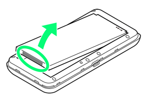 - 電池パックの(+)(-)が表示されている面を上にして、端子部分を本体の端子部分に合わせて