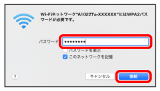 画面表示や手順は、Mac OS X 10.15で、無線LAN設定の暗号化方式が「WPA2」で「Wi-Fi名(SSID A)」に接続する場合を例にして説明しています。
