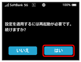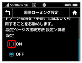 ONになり、本機の再起動後に海外でローミングが利用できるようになります。