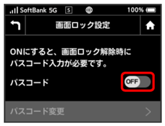 - 「パスコード」のOFF