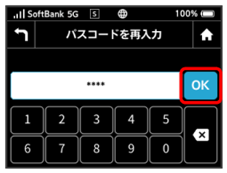 - パスコードを再入力