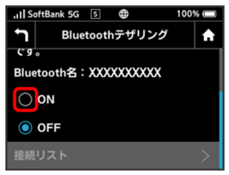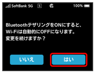 - BluetoothテザリングをONにすると、無線LAN機能が無効になります。無線LAN接続中の機器は接続が切断されますのでご注意ください。
