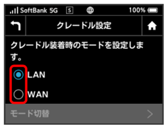 - WANを選択した場合は、モード切替