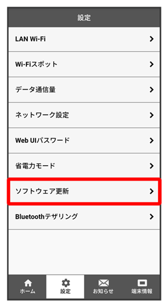 最新のソフトウェアを確認します。最新のソフトウェアがある場合はソフトウェアが更新されます。