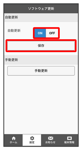 ソフトウェア自動更新機能のON/OFFが切り替わります。