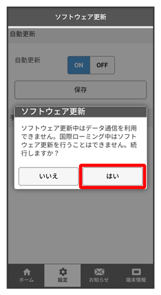 - 自動更新機能をONにしていると、最新のソフトウェアがある場合はソフトウェアが更新されます。通信中、ローミング中、また電池残量が30%未満の場合は更新が開始されません。