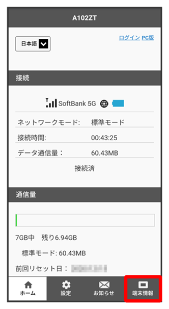 | SSID A接続数 | 本機のWi-Fi名(SSID A)に接続している端末の台数と最大接続可能台数です。 | |