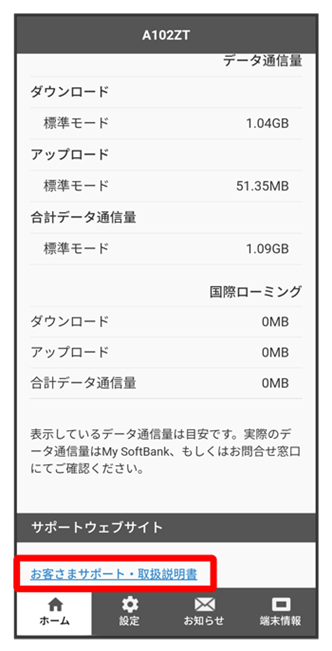 お客さまサポート、取扱説明書のサポートウェブサイトを表示します。