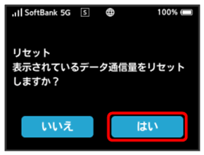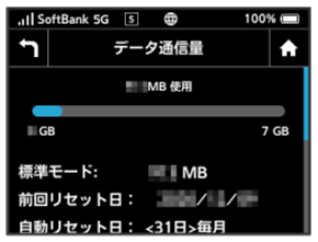 ご利用開始もしくはリセットしてから現在までのデータ通信量を表示します。