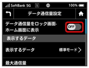 モバイルネットワークのデータ通信量をホーム画面に表示するかどうかを設定します。また、最大通信量を設定したり、表示されているデータ通信量をリセットしたりできます。