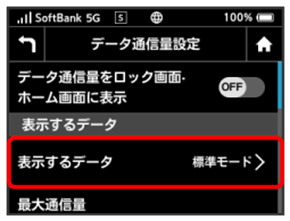 ホーム画面やロック画面に表示するデータ通信量を、「標準モード」、「アドバンスモード」または2つのモードの合計値のいずれかに設定できます。