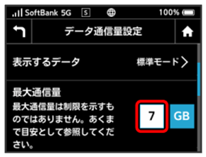 また、表示される最大通信量は契約された料金プランに連動したものではありません。適宜変更してご利用ください。