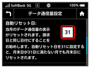 毎月、データ通信量を自動的にリセットする日を設定できます。