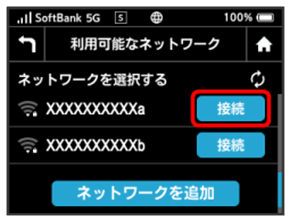 入力したネットワーク名(SSID)の機器と接続されます。