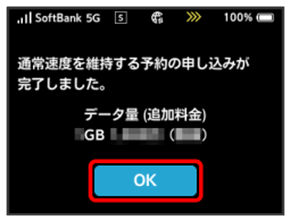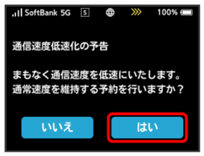 通信速度の低速化を予告するポップアップ画面が表示された場合に、低速化解除の予約のお申し込みができます。