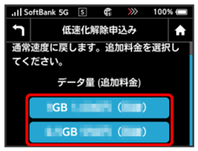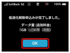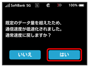 通信速度の低速化の開始を通知するポップアップ画面が表示された場合に、低速化を解除して通常速度に戻すお申し込みができます。