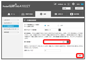また、表示される最大通信量は契約された料金プランに連動したものではありません。適宜変更してご利用ください。