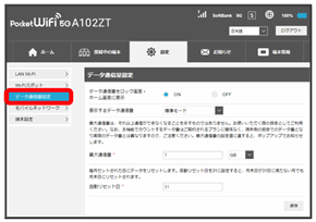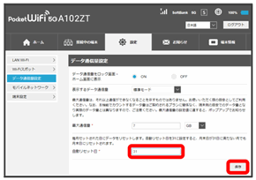 毎月、データ通信量を自動的にリセットする日を設定できます。