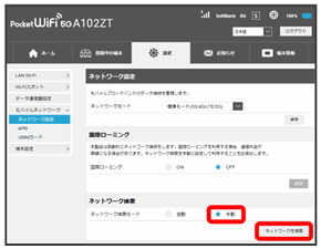 選択したモードでネットワークに再接続されます。また、設定したネットワークモードがロック画面に表示されます。
