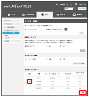 モバイルネットワークを検索して、ネットワークを設定できます。日本国内では、自動モードのみご利用になれます。設定の変更はできません。