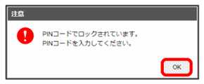 本機の電源を入れてパソコン接続したときに、パソコンからWEB UIへアクセスしようとすると、「PINコードでロックされています。PINコードを入力してください。」という注意画面が表示されます。