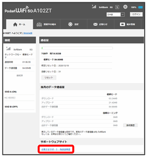 お客さまサポート、取扱説明書のサポートウェブサイトを表示します。