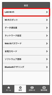 | Wi-Fi | 無線LANを使用するかどうかを設定します。 | |