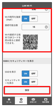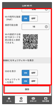 | QRコード | 無線LAN端末からQRコードを読み取って、Wi-Fi接続することができます。 |