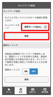 選択したモードでネットワークに再接続されます。また、設定したネットワークモードがロック画面に表示されます。