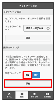 国際ローミングの利用をONにします。