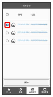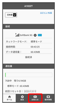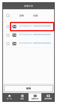 新しいお知らせを受信した場合、本機のホーム画面のタッチメニューにお知らせの件数が表示されます。モバイル機器のWEB UIで操作中は、「お知らせ」メニューからお知らせを確認できます。