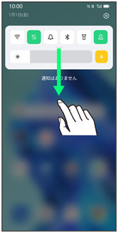 - ロック画面でステータスバーを下にフリック/スワイプ