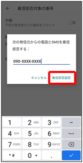 - ブロックする番号を入力