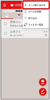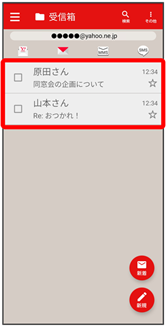 - 受信箱画面で、画面を下にフリック/スワイプしても新着メールの確認ができます。
