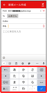 - CcやBccで送信したい場合は、Cc,Bccをタップして、