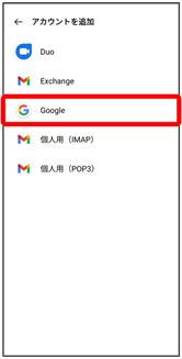 ここではGoogleのメールアカウント追加を例に説明しています。