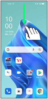 - ホーム画面を上にフリック/スワイプ