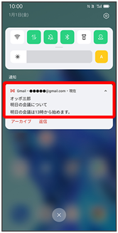 新着メールを受信するとステータスバーに