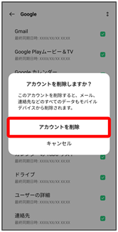 - アカウントを複数登録している場合は、Googleをタップして削除するアカウントを選択してください。