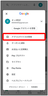 - Google Play画面で右上のアカウントアイコンをタップ